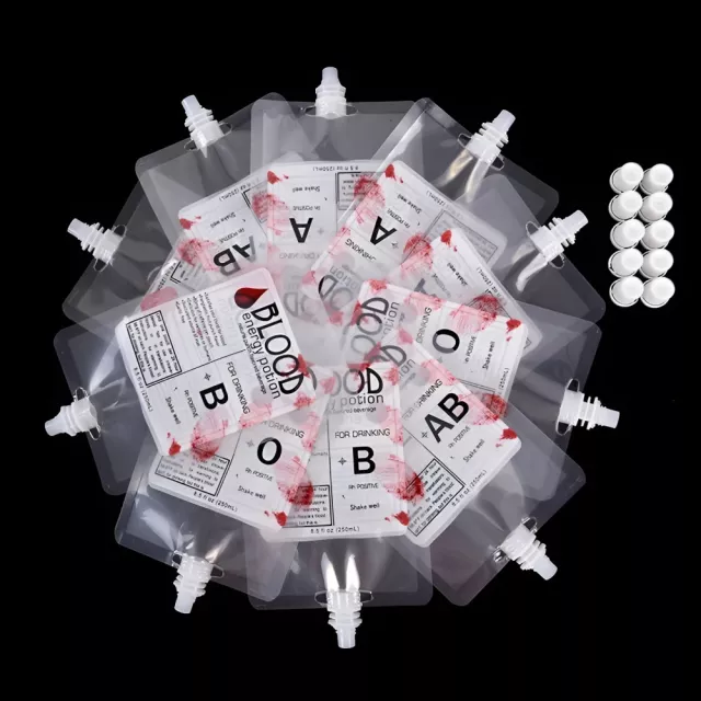 Made from high-quality PVC and free from harmful chemicals, these bags are safe to use and reusable. Each pouch includes a convenient sealing cap to prevent leaks, and the translucent design allows your red cocktails, juices, or mocktails to shine through—making them look just like real blood. Choose between 10 or 20 pieces, depending on the size of your gathering.
